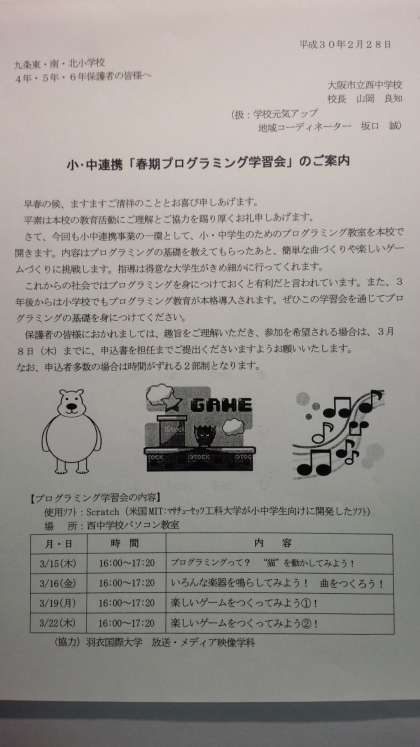 本日は、小中連携「春期プログラミング学習会」2日目です。