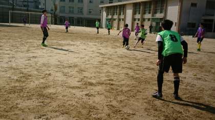 昨日の荒天から一転、春の陽気の中、いつもとは違う環境の中で、サッカーをしてきました。