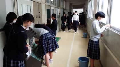 次に教室の入る後輩のために、すみずみまで綺麗にしています。