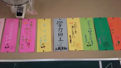 早速2年1組の皆さんの目標とともに掲示してくれました。
