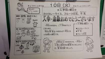 本日の献立は、カツカレーライス、フルーツ白玉、牛乳です。