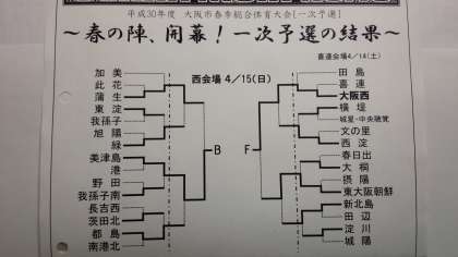 Fトーナメントを制し予選通過、大阪市ベスト8に残り、6月の決勝トーナメントに進出します。