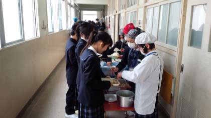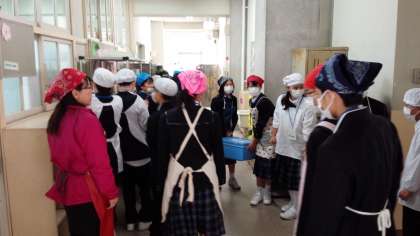 小学校で慣れているので、1年生各クラスとも、マナーを守って仲良くスムーズに配膳ができています。