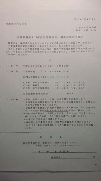 本日は、年度初めの「土曜参観」等です。