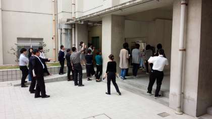 今日は、今年度9月から親子給食が始まる中学校の先生方が、本校に見学に来られています。