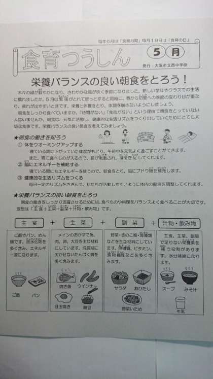 本日、食育つうしん5月号を配付しています。