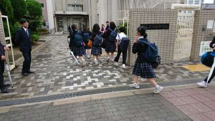 体育館に修学旅行の荷物を置いてから、教室での授業に向かいます。