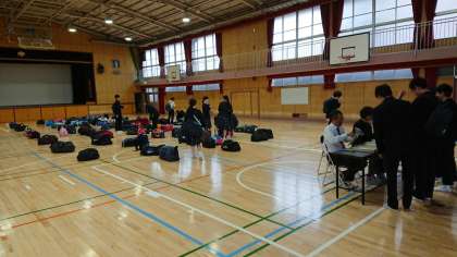 本日、3年生は前日指導のため修学旅行の荷物を持って登校しています。