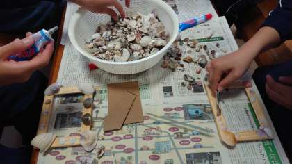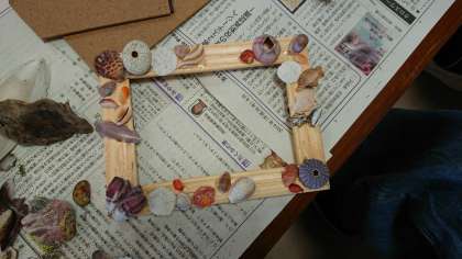 ビーチコーミング収集物で、フォトフレームに飾りつけをします。