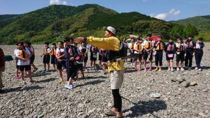 選択型体験、川遊び班が、「かわらっこ」に到着しました。