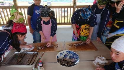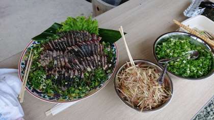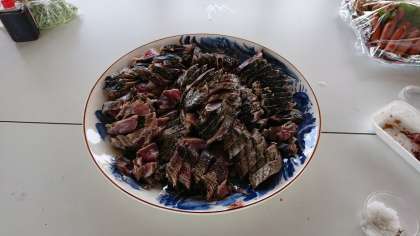 藁焼きしたカツオのタタキを切って、まずは塩タタキでいただきました!