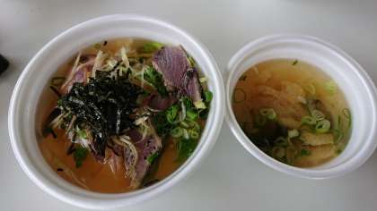 味噌汁とカツオのタタキのお茶漬けもいただきました!