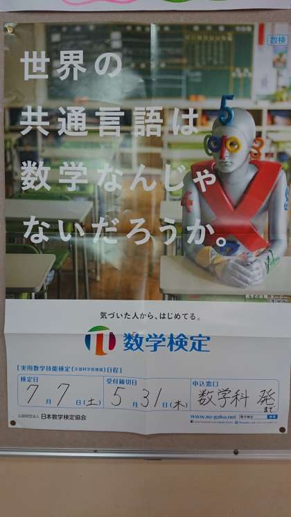 数学検定の申し込みが5月31日までです。