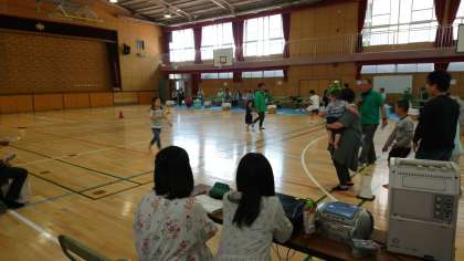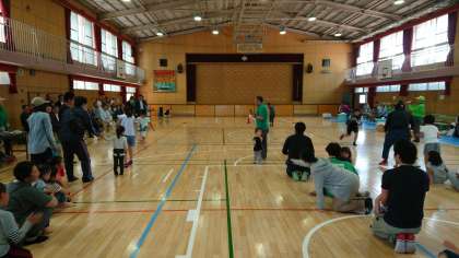 本日、本校体育館において、千代崎ふれあい運動会が開催されています。