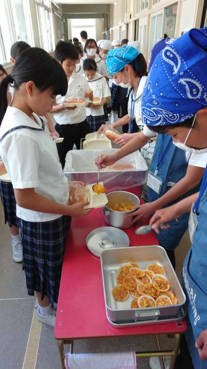 ピザに、ミックスフルーツに、はちみつパンと、子どもたちは大喜びです。