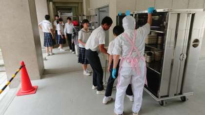 「ごちそうさまでした!」と給食配膳員さんに言って食器類を返却します。