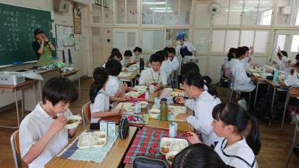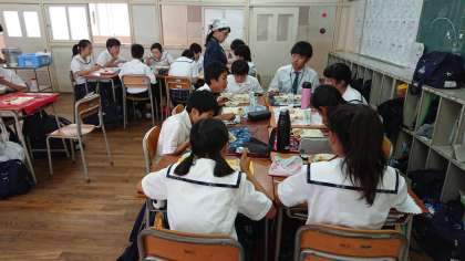 今日も、教育実習の先生、特別支援サポーターの先生も、子どもたちと一緒に、楽しく給食を食べてくださっています。