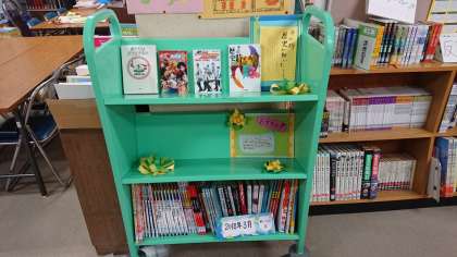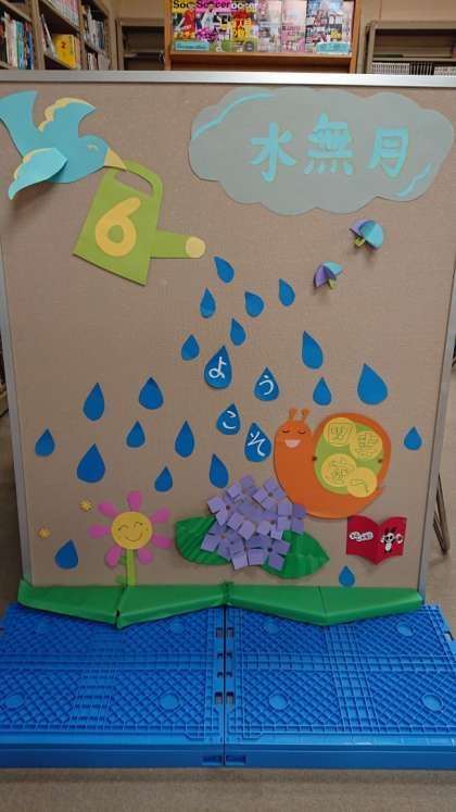 図書館補助員さんが、図書館入口のボードを6月バージョンにしてくださいました。