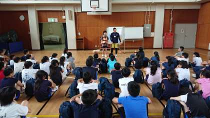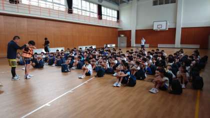お昼ごはん後、入室、水着に着替えて、体育館で入館式です。