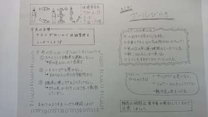 雨の日の注意事項と、プールの授業に向けての注意事項についてまとめてくれています。