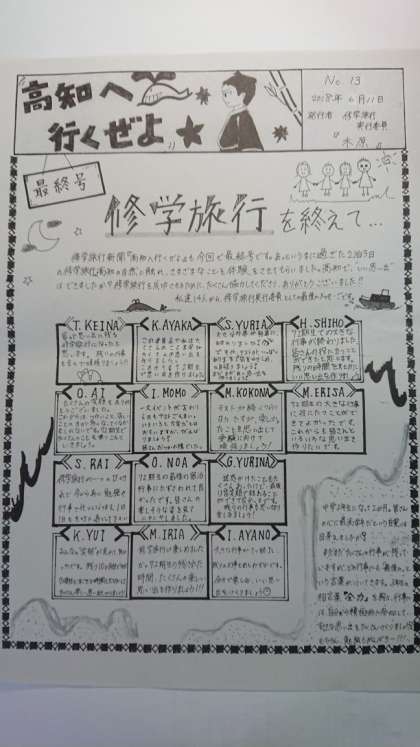 修学旅行を無事に終えて、修学旅行実行委員会のみなさんが、「高知へ行くぜよ」最終号を発行してくれました。