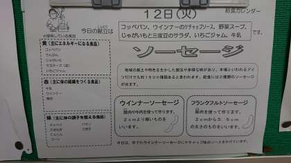 コッペパンにはいちごジャムが付いていますが、ウインナーをはさんで食べている生徒も多くいました。