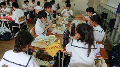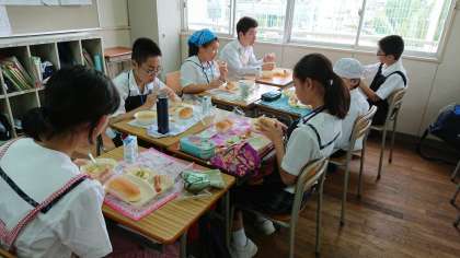 そして、教育実習の先生も、生徒と一緒に食べてくださっています。