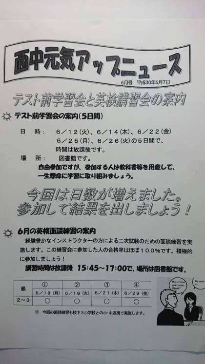 テスト前学習会と英検講習会の案内です。
