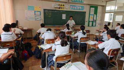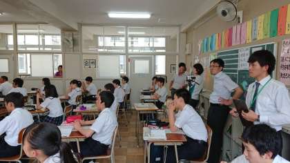 つづいて、6時限目、2年1組社会科、山下先生の研究授業の様子です。