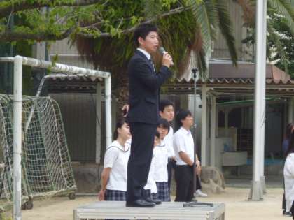 最後に皆さんにお話ししたいことがあります。みなさんには心から友達だと思える人がいますか?先生はいます。別に今すぐ作りなさいとかそういうことを言いたいのではなくて、生徒の皆さんが中学校生活の中でそのような友達を見つけることが出来たらいいなと思ってお話させていただきました。