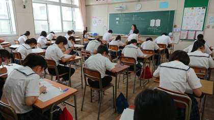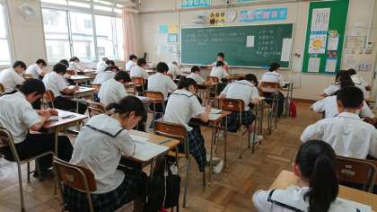本日2日目は、1時限目 社会科、2時限目 保健体育科のテストが実施されています。