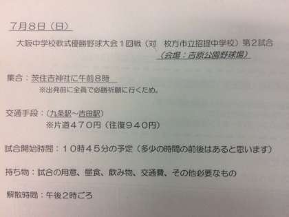 よって明日は、午前中に校内にて短時間の練習(7:00〜9:00ごろ)を行います。