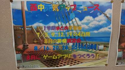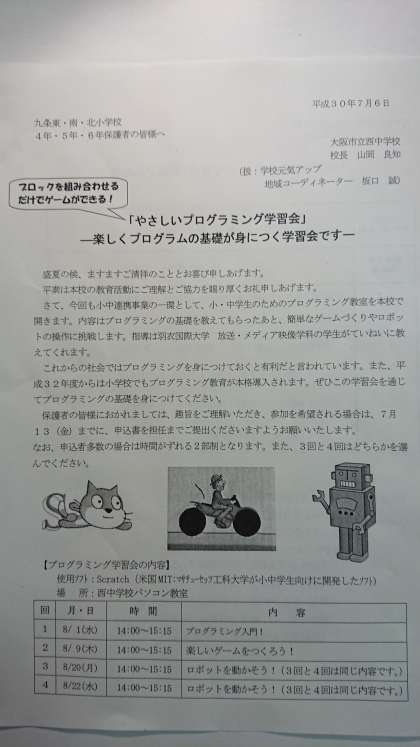 夏休み「やさしいプログラミング学習会」の案内も配付しています。