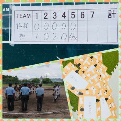 しかし、まだ1回戦。ここからも「負けられない戦い」が続いていくので、さらに団結を深めて最強で最高のチームになろう。(写真右下は、先日3年生が顧問2人に書いてくれた手紙です。感謝の心が伝わってきて、人間的に成長したなと感じると同時に、一日でも長い夏にしたいなという気持ちが溢れました。)