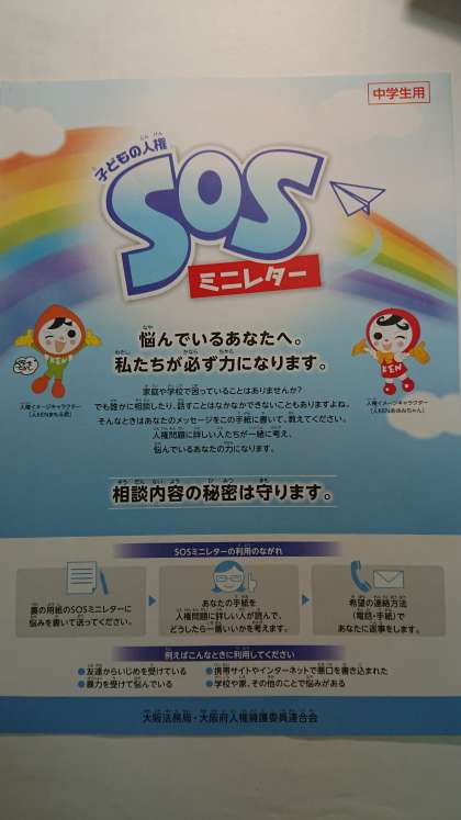「子どもの人権SOSミニレター」のパンフレットもいただきました。