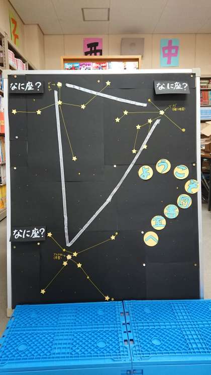 図書館入口の飾りつけが「星座」をモチーフしたものにかわりました。