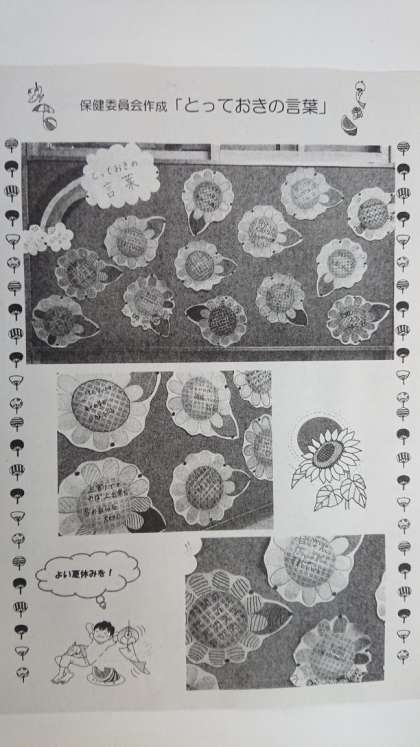 裏面は「とっておきの言葉」です。保健室前に掲示していますので、ぜひご覧ください。