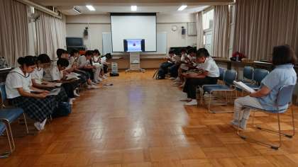 午後からは、8月6日の平和登校日に行う、朗読劇「対馬丸」の読みあわせ練習を行っています。