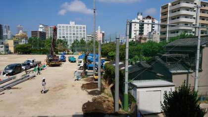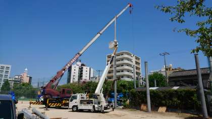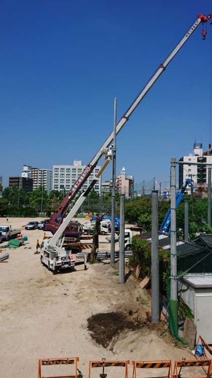 既設ネットと既設ポールを撤去し終え、本日から新しいポールの建柱が始まっています。