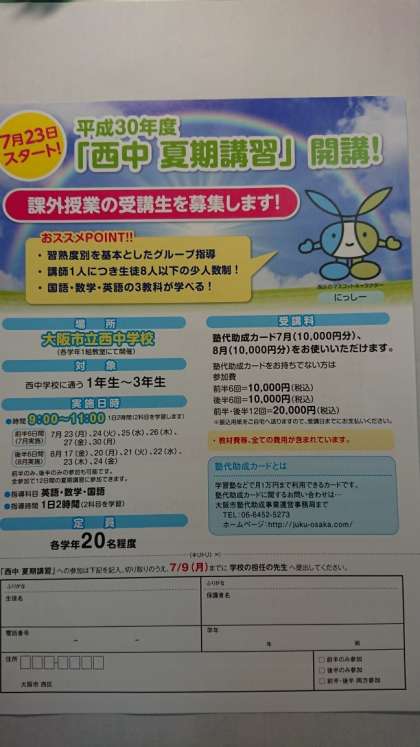 前半6日間につづいて、「西中夏期講習」後半6日間が、今日から始まりました。