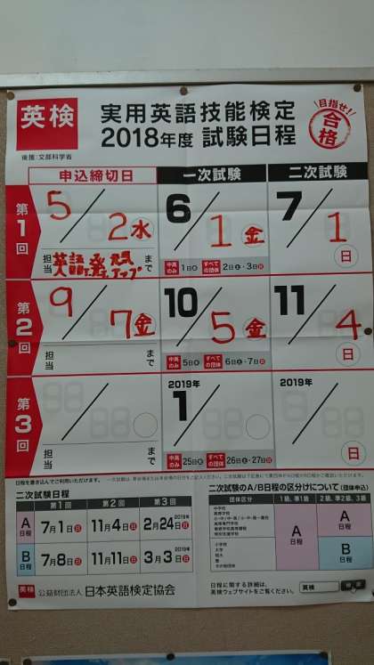 英検の申し込みが始まりますので、ぜひご覧ください。