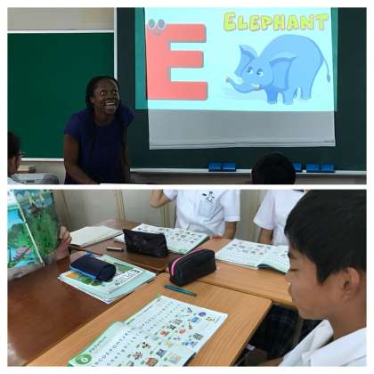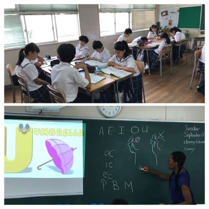 始めにそれぞれの音を練習した後、グループになってお互いの発音をチェックし合いました。