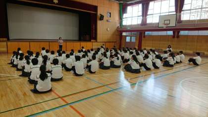 かわって、2年生が臨時学年集会を行いました。