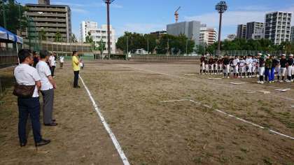8時30分からの開会式が西区長様、府議会議員様、市会議員様ご臨席のもと行われ、西中学校代表による選手宣誓です。