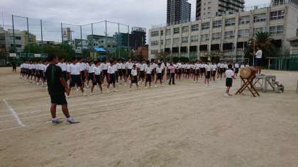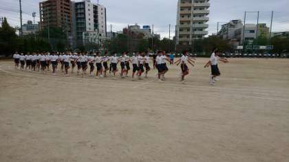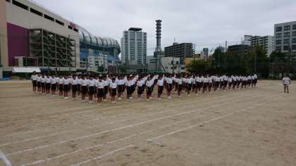 曇り空で非常に涼しい中、開閉会式、行進練習、校歌練習等を行うことができました。