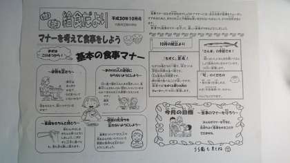 「給食だより10月号」を配付していますので、ぜひご覧いただき、ご家庭での「食育」にお役立てください。