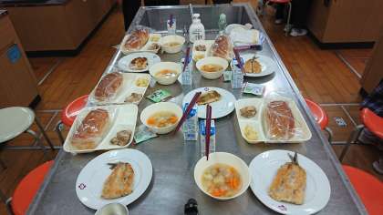 2年2組は、これにイワシのパン粉焼きがつきます。