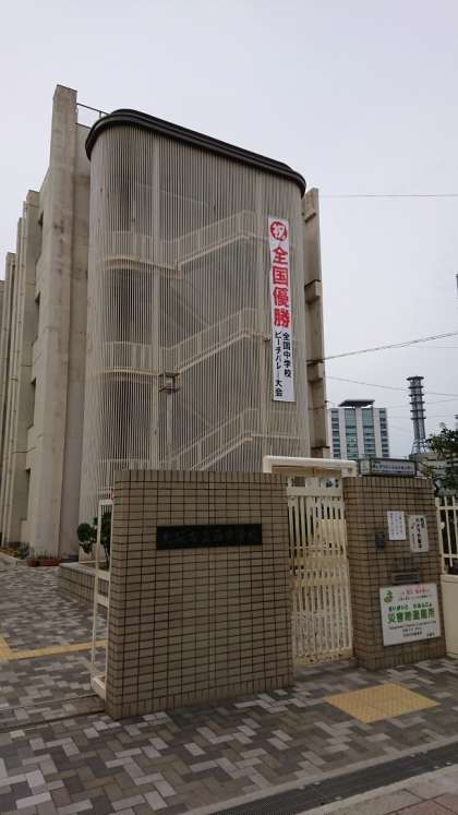 全国中学校ビーチバレー大会「全国優勝」の垂れ幕を、度重なる台風の通過により一旦おろしていましたが、本日から再び正門から見えるように吊るしました。
