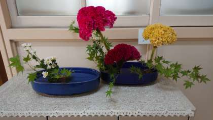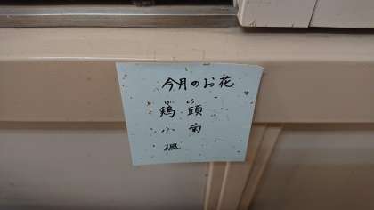 今月のお花は、鶏頭、小菊、楓、秋のお花です。