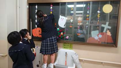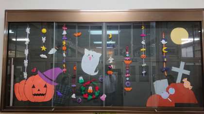 家庭科部と美術部がコラボして、校長室前の掲示板を文化発表会に向けての飾りつけにしてくれました。